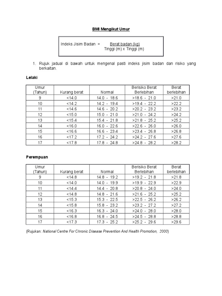 Jadual Tinggi Dan Berat Mengikut Umur Eileenrtw